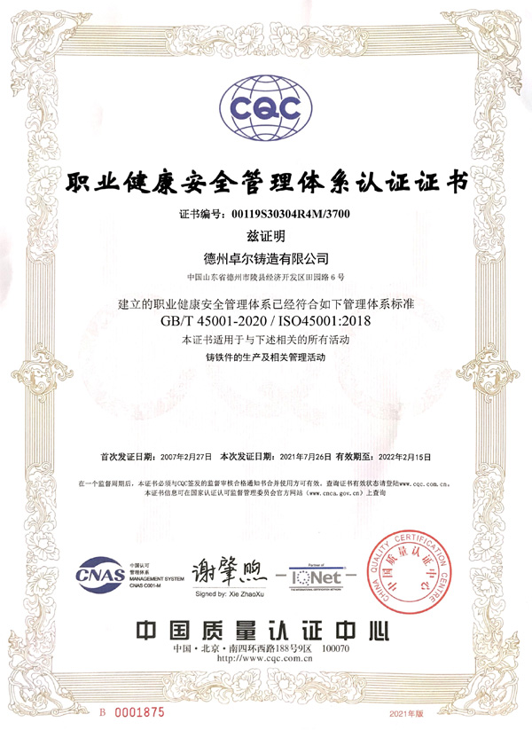 職業(yè)健康體系認(rèn)證證書